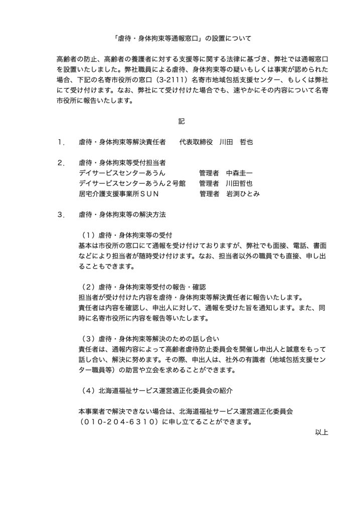 「虐待・身体拘束等通報窓口」の設置について